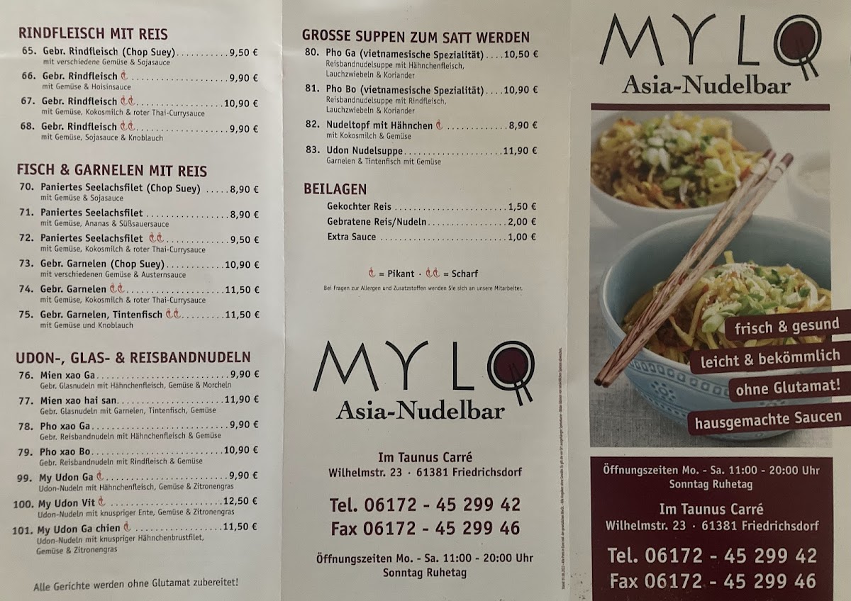 Welcome to Mylo Asia Noodle Bar, where the heart of Asia meets the charm of Friedrichsdorf. Located at Wilhelmstraße 23, this vibrant noodle bar is perfect for both dine-in and takeaway experiences. Customers rave about the deliciously fresh dishes, emphasizing the heavenly flavors that greet your palate with every bite. One customer, Thomas, highlights how the food not only tastes great but is also served piping hot, ensuring a delightful meal on every visit.